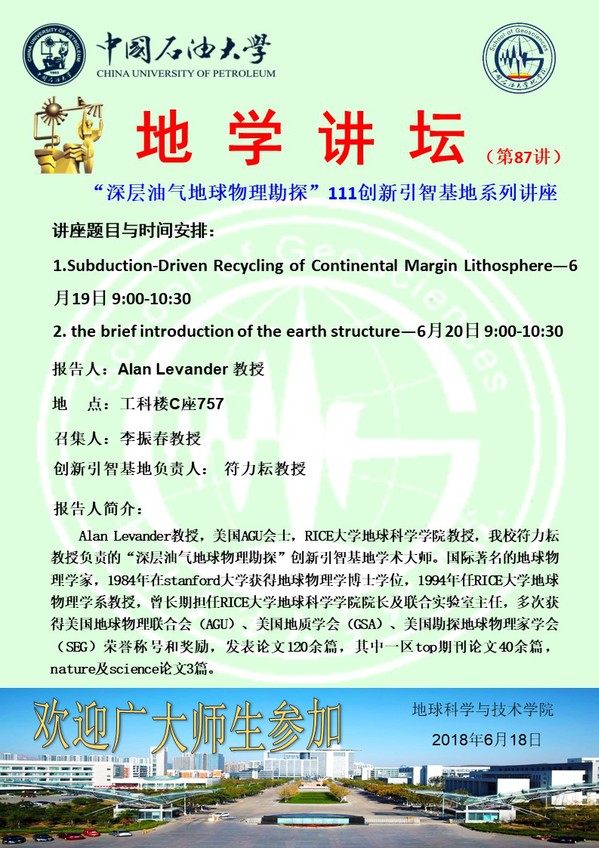 【地学讲坛第87讲】关于Alan Levander 教授系列学术讲座的通知