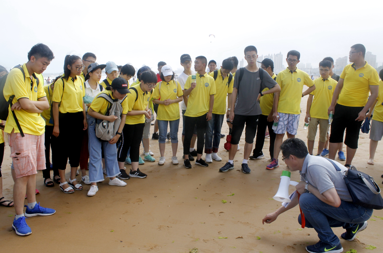 “金沙滩是典型的无障壁高能海岸, 后滨发育有风成波痕……”在金沙滩上,教授们向营员们讲述金沙滩的地形特点,不时还蹲下身来,在沙滩上描画金沙滩沿岸的地形图。