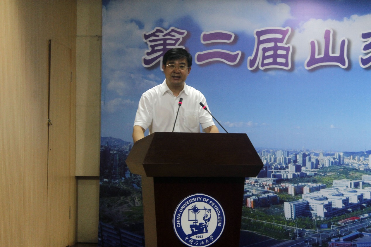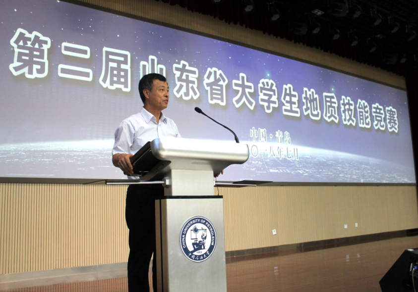 公司经理林承焰在闭幕式上发表致辞,他肯定了选手们团结协作、沉着冷静的精神和扎实的知识、实践基础,并对为本次竞赛辛勤付出的老师、志愿者们表示感谢。随后,林承焰宣布第三届山东省老员工地质技能竞赛承办方为中国海洋大学。中国海洋大学地球科学公司经理王厚杰表示,将力求把地质技能竞赛办的更好,打造一个推动地质学的人才培养质量提高,促进老员工的地质专业思想,促进各个高校之间的互融互通的优秀平台。
