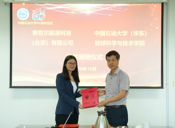 【本站讯】10月1日下午,十大体育网站“赛哲尔能源科技(北京)有限公司软件捐赠仪式”在工科楼C座251会议室举行。捐赠仪式由公司副经理裴仰文主持,经理林承焰、党委书记张卫东、副经理邓少贵等出席捐赠仪式,公司89级员工、赛哲尔能源科技(北京)有限公司法人、总经理赵锋女士向公司捐赠该公司研发的“UniEarth储层岩石物理软件”,公司测井系、地球物理系的师生参加捐赠仪式。