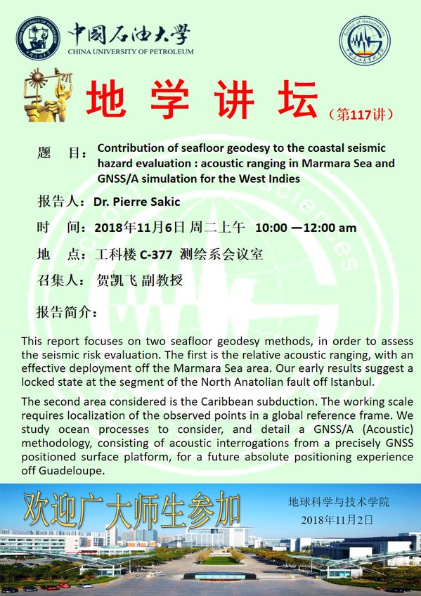【地学讲坛第117讲】关于Pierre Sakic博士学术报告的通知