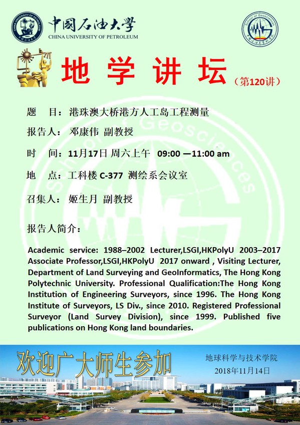 【地学讲坛第120讲】关于邓康伟副教授的学术报告通知