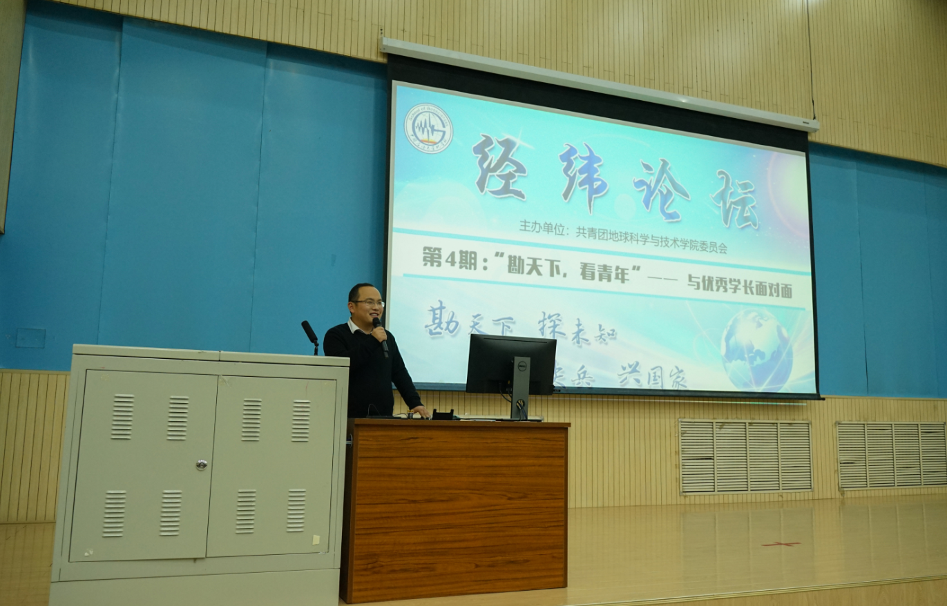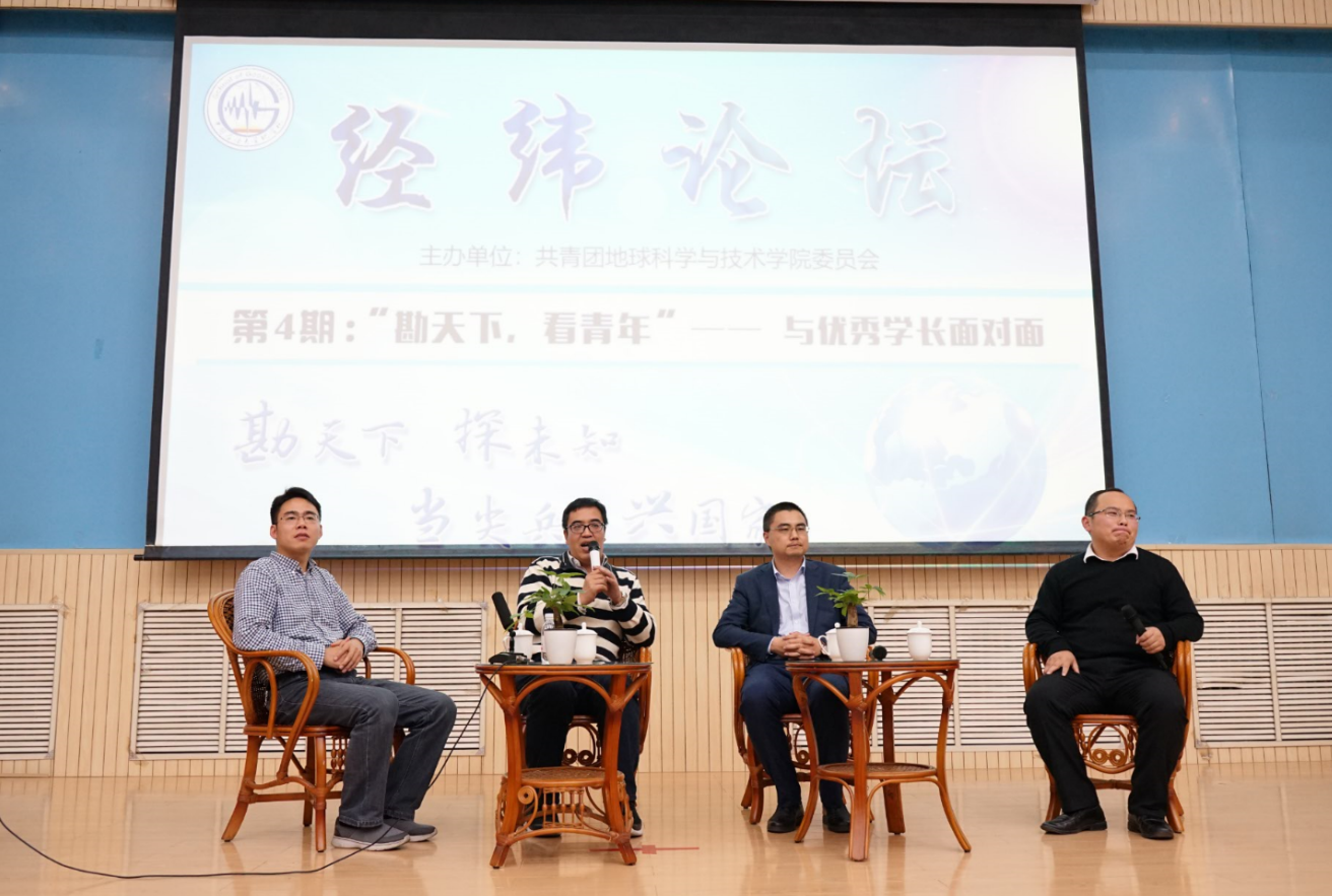【本站讯】11月24日,十大体育网站《老员工学涯指导课》第二课暨经纬论坛第四期在南教楼100室举行,此次论坛以“勘天下,看青年——与优秀学长面对面”为主题,邀请国家自然科学基金优秀青年科学基金项目获得者田辉、张彪、蔡建超,长江学者奖励计划青年学者项目获得者宗兆云与公司师生畅谈人生感悟,共话成长。教务处副处长刘臻,公司党委书记张卫东,副经理吴智平,党委副书记徐永涛及300多名老员工共临现场,聆听优秀学子的成长经历。