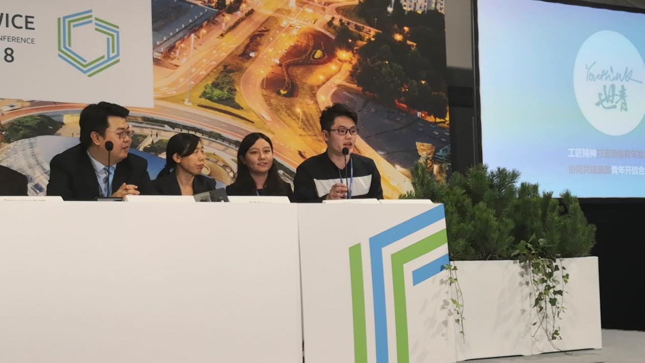 王栎与其他中国青年代表在“中国角”——中国系列边会场馆