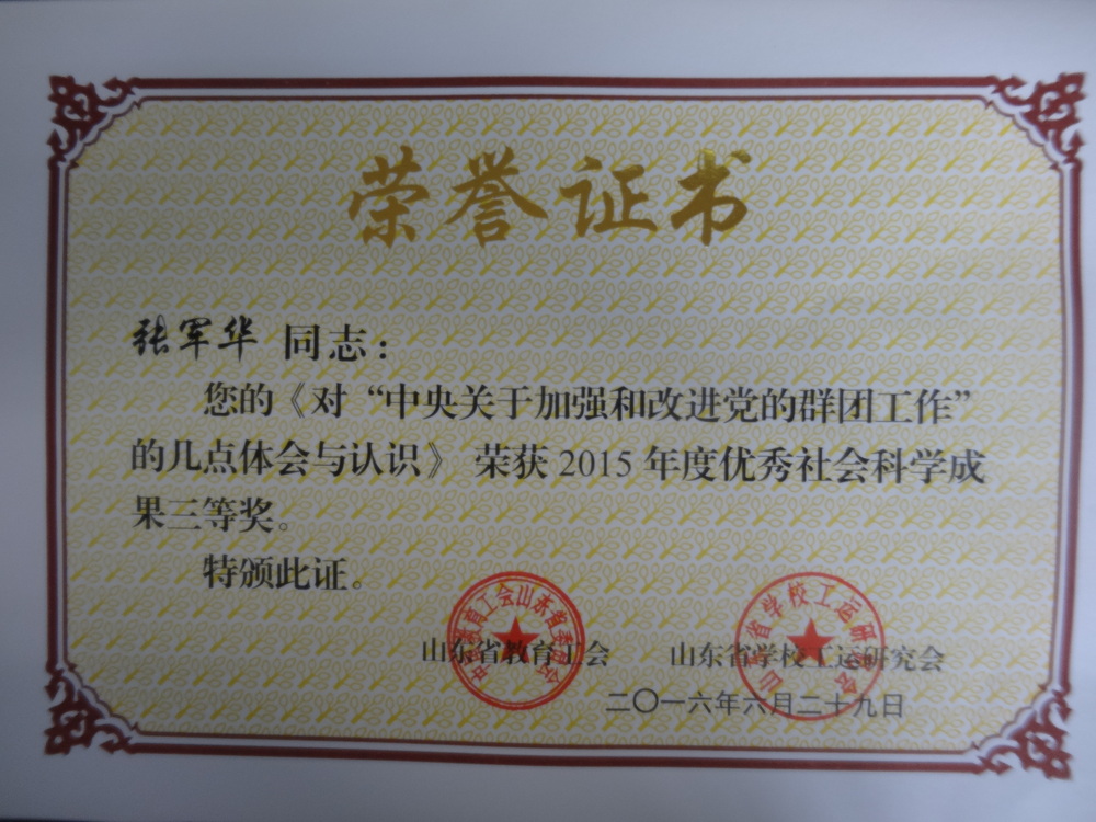工会系统省级奖励(2016年)