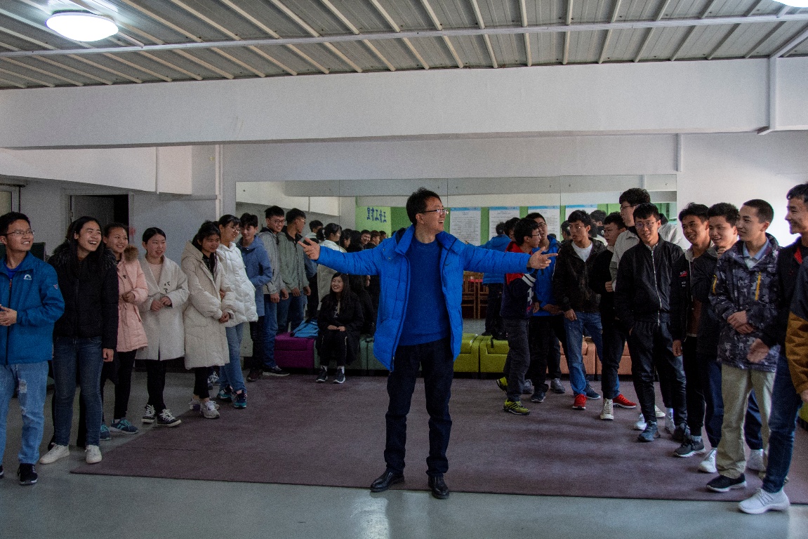 活动伊始,周晓东老师为全体员工介绍了该活动的目的以及期望结果,并通过“大风吹”活动与同学们共同热身。随后,周晓东老师用“趣味传话”游戏让同学们在欢乐的气氛中体悟到“不要轻信风言风语、谣言止于智者”的道理。接下来,“小鸡成长”游戏将气氛推向高潮,同学们在成长与退化中体悟成长的成就感,并感受在集体中得到的成长动力。最后,周老师通过活动“信任坐”引导同学们珍惜在校时间、充分利用公司资源、互帮互助,在大学四年共同进步。