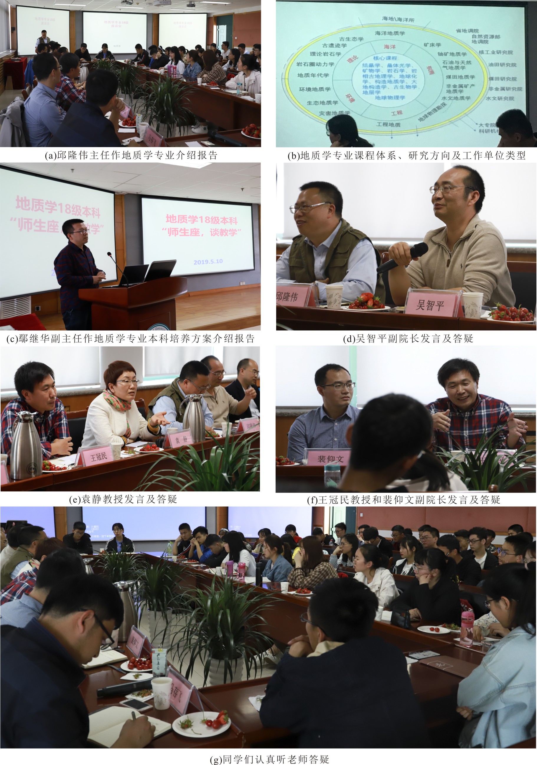 【本站讯】为了增加地质系教师与地质学专业18级员工的相互交流,解答大一学业关键期遇到的疑惑,加深对地质学专业的认识,培养对地质学专业的兴趣,建立从事地质学方向工作的信心,地质系组织了一场规划许久的师生座谈会。座谈会于5月10日上午在工科楼C757会议室举行,由地质系主任邱隆伟教授主持,主管公司教学工作的吴智平副经理、地质系党支部书记陈勇教授、主管地质系教学工作的鄢继华副主任、地质系教师代表袁静教授和王冠民教授、学业导师裴仰文副经理和葸克来副教授、班主任王玺和马存飞老师以及地质1801班和地质1802班全体同学共同参加。座谈会主要以多媒体介绍和教授解答的方式进行。