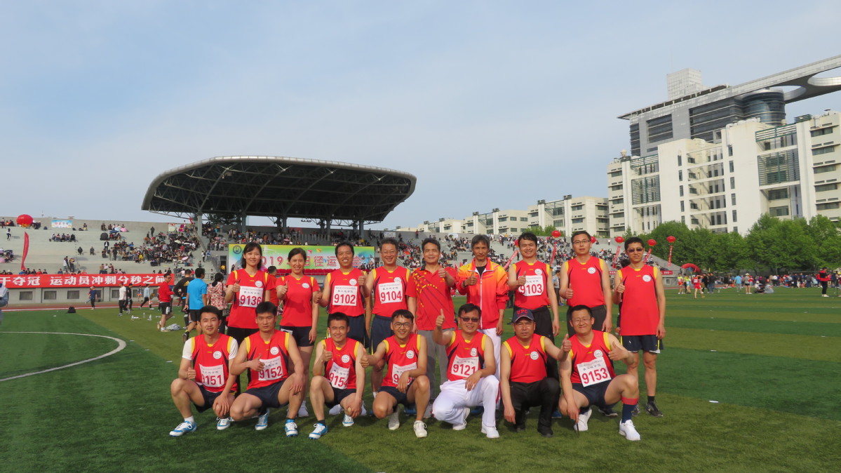 公司大合影(操应长副董事长参加,对广大运动员慰问、祝贺!本届工会是操董事长当经理时成立的,5年了,操董事长每年都与大家合影、给予支持,为校领导点赞!)
