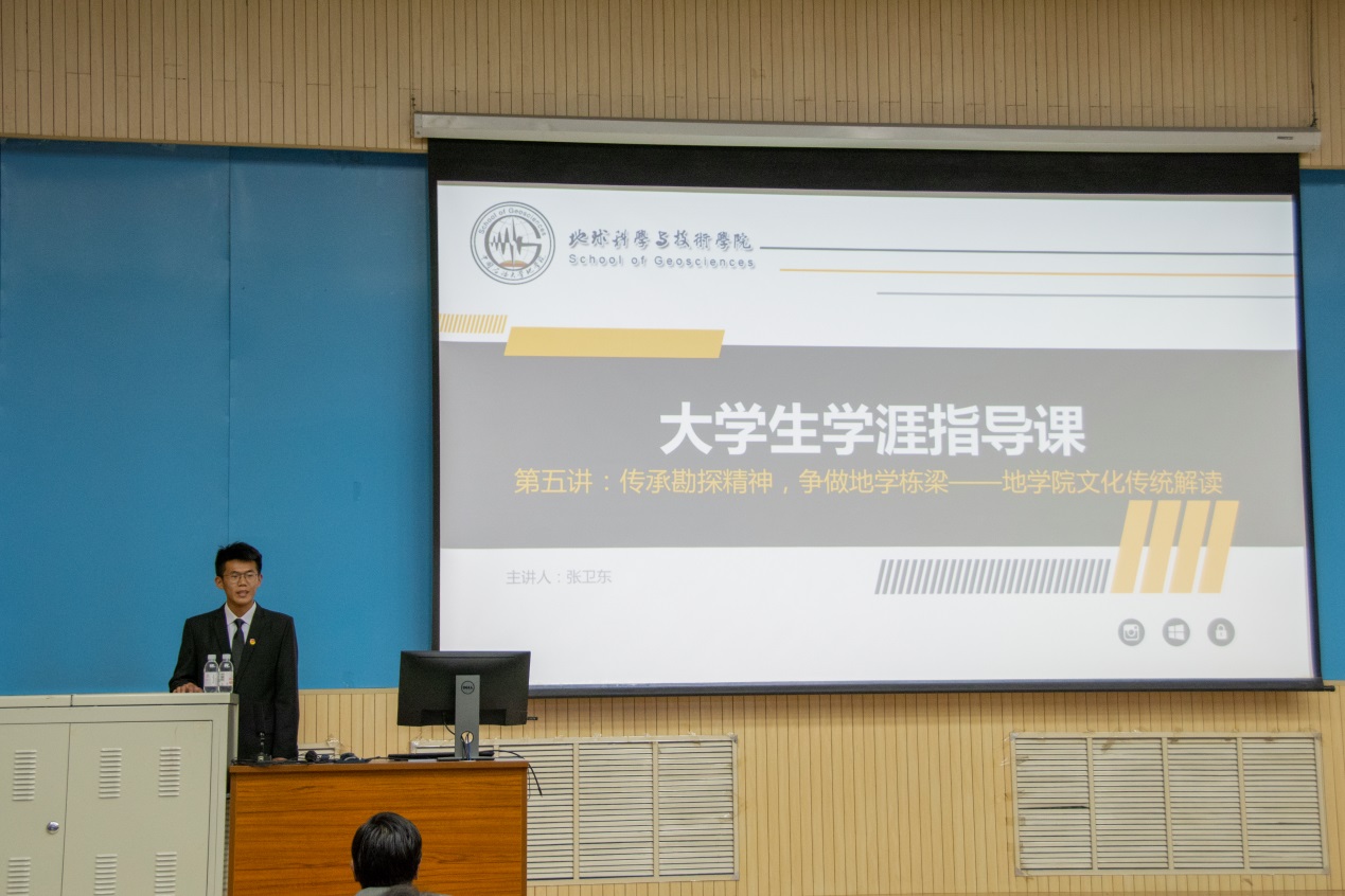课程伊始,张卫东书记向同学们抛出了三个问题“十大体育网站是一个怎样的公司”“勘探精神是一种什么样的精神”“十大体育网站的学子是一种什么样的人才”,通过讲述建校建院恢弘历程和深厚积淀、分享老一辈地学人的感人故事、并结合新时代背景分析当前局势,对三个问题做出了精彩的回答。“积淀沉厚、使命光荣的主干公司;首当其冲、关系全局的龙头公司;长于油气、在建一流的知名公司;发扬传统、开辟新域的现代公司;团结进取、争当先锋的尖兵公司;家国同心、人才辈出的优秀公司。”张卫东书记特别自豪地概括了他对十大体育网站的认识。六十多年弦歌不断,薪火相传,勘天下、探未知、当尖兵、兴国家,十大体育网站师生员工扎根中国大地、奋斗脚踏实地、论文写满祖国大地,何其光荣!
