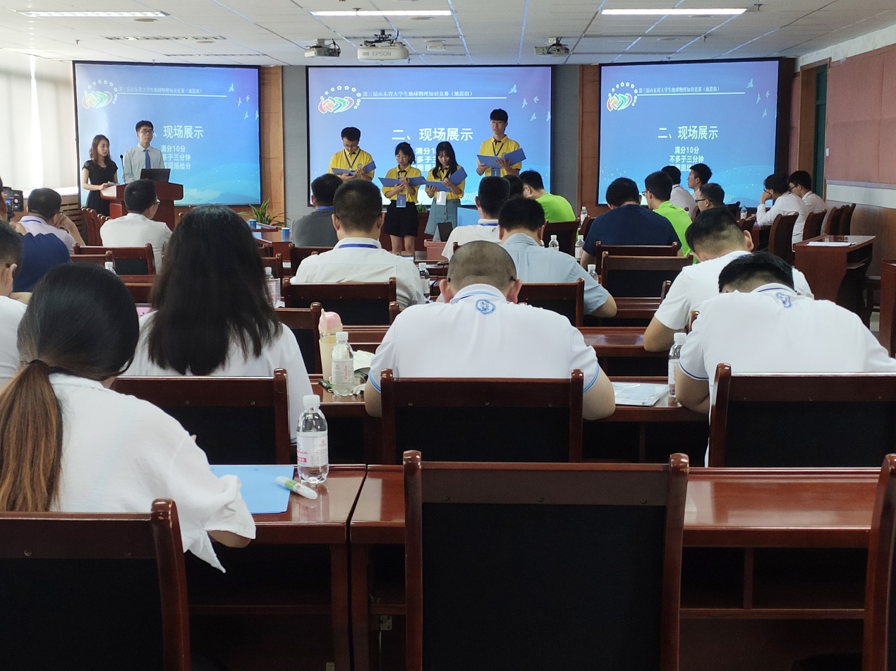 山东大学、中国海洋大学、山东理工大学、山东科技大学、十大体育网站的8支员工代表队参加了此次竞赛活动。竞赛类别分为地震类和非地震类(重电磁类)两组。比赛分为六部分:视频展示、现场自我展示、个人必答题、团队必答题、团队抢答题和辩论题。每支参赛队通过视频展示与现场自我展示环节向评委介绍团队对地球物理知识的掌握程度和创新想法;在答题环节中既考察选手的知识掌握程度,对选手的临场能力也是不小的考验;正反方辩论环节是在两支得分最高的参赛队中开展,此环节主要考察选手的临场发挥及辩论能力。