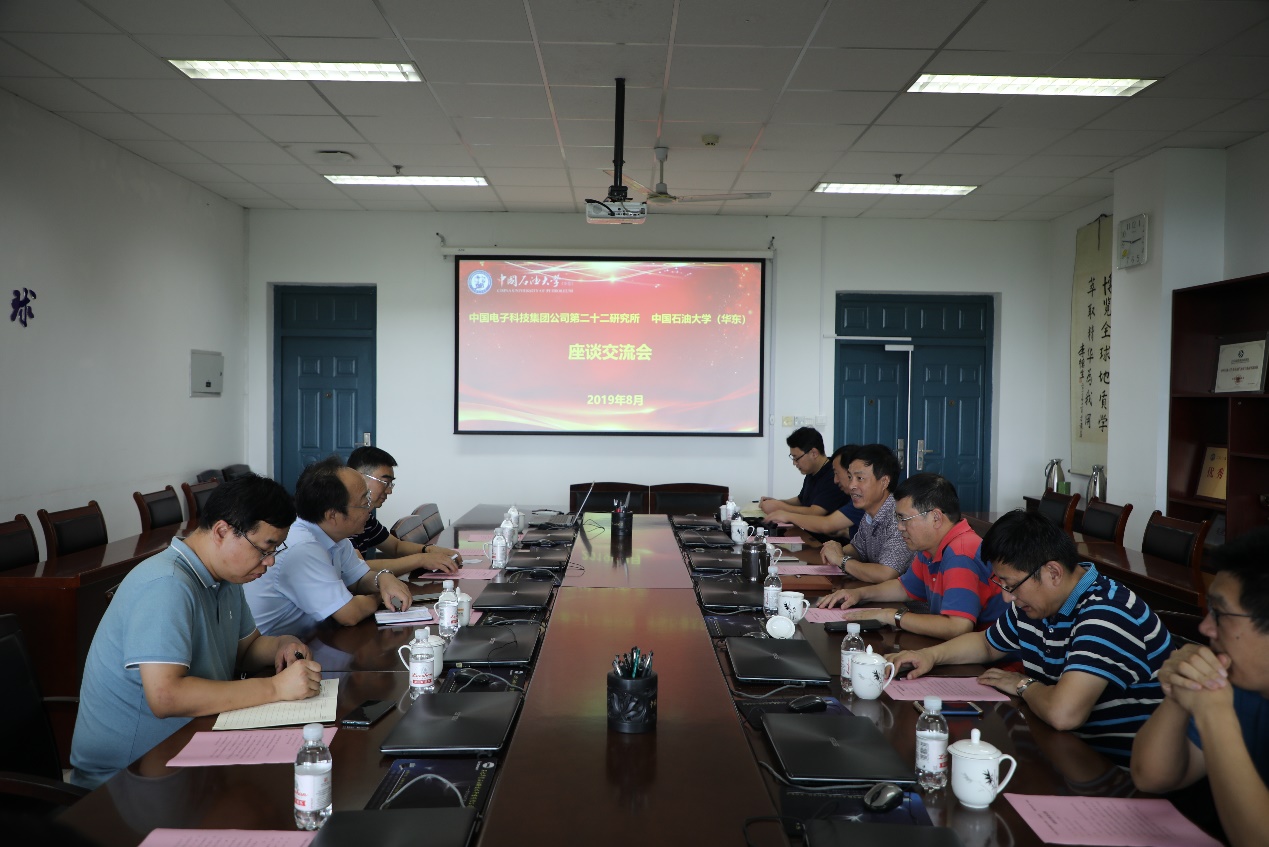 【本站讯】8月7日,中国电子科技集团公司第二十二所所长助理、第七研究部部长姚文华一行来院座谈交流。公司班子、测井系及物探系师生代表参加交流。座谈交流会由经理林承焰主持。
