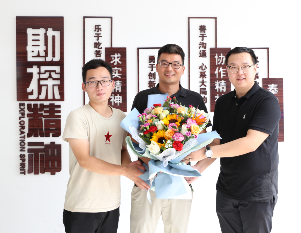 员工代表张浩、于蔡欣达为范宜仁教授、刘可禹教授等教师代表赠送员工书法作品、鲜花表达感恩之情。“这是我收获到的最好的教师节礼物,我会以 ‘淡泊常泰’来要求自己专心治学,将知识在三尺讲台之上发扬传播,为祖国培养新时代的地学前沿人才。” 范宜仁老师高兴地说。