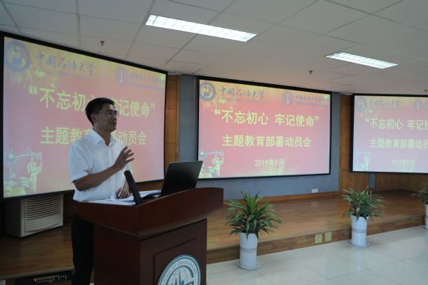 9月23日下午,地公司党委召开“不忘初心、牢记使命”主题教育动员部署会。地公司党委书记张卫东作动员部署,公司“不忘初心、牢记使命”主题教育第一指导组组长、纪委副书记张伟到会指导。公司班子成员、党委委员、教工党支部委员会成员、机关干部以及党员代表参加会议。