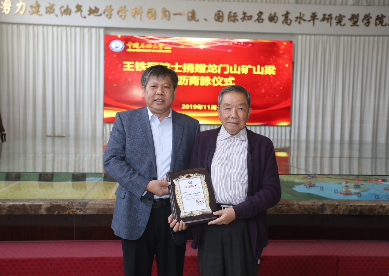 姚军对王铁冠院士的捐赠之举表示感谢,指出公司正处于“双一流”建设关键时期,按照“强化、拓展、提升”的思路调整学科布局,强化石油石化学科,拓展新能源、新材料、海洋学科,提升基础和通用学科。此次捐赠龙门山矿山梁大沥青脉将野外地质现象生动地搬进校园,将助力公司建设一流学科、培养一流人才。我们定将发挥好这块大沥青脉的作用,提高教学科研水平,传承石大精神,丰富石大文化,培养地学英才,为祖国能源事业做出新贡献。