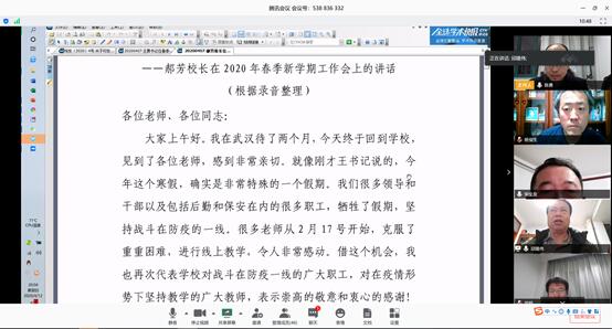 之后邱隆伟教授对公司新学期工作会议精神特别是2020年工作重点进行了说明,结合地质系的实际情况,对本学期工作进行了动员和安排。鄢继华副主任对本学期教学工作进行了梳理,对在疫情影响下如何开展线上教学、考试与考核、本科毕设、野外地质实习等工作进行了详细安排。并对面临的一些问题进行了说明,如线上教学员工反馈掌握情况、考试与考核多元化、毕设指导需要在教务系统记录等。王健副主任对实验室安全作了说明。