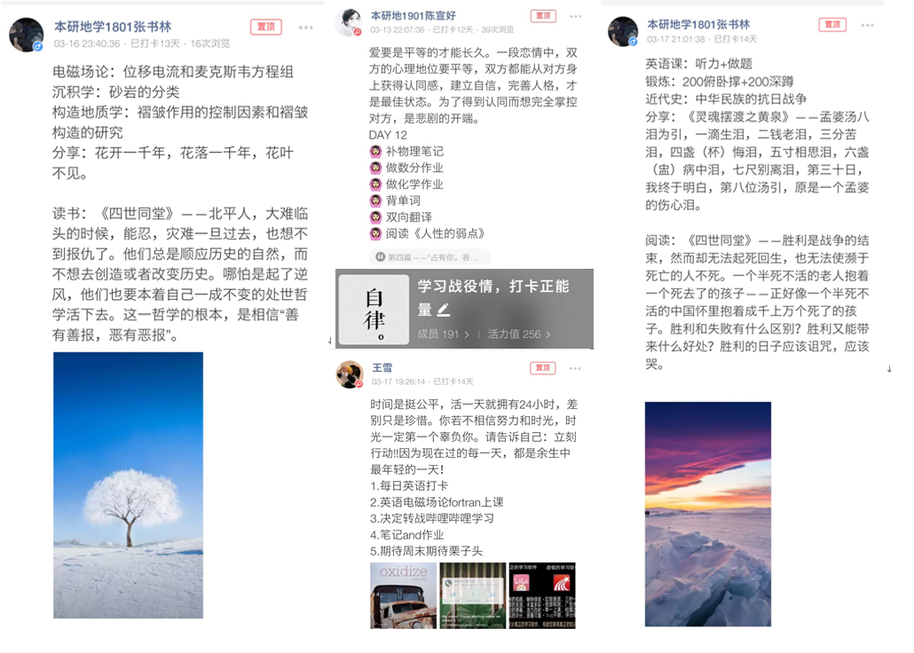 如何克服线上学习容易出现的态度懒散、效率低下等现象一直是十大体育网站心理工作站在开展活动时思考解决的问题。心理健康工作站以公司员工的心理安全健康与学习效率为首要前提条件,积极响应病毒防治政策,推出“学习战疫情,打卡正能量”为期14天的学习打卡活动。参与者除学习状态和读书笔记的打卡外,还通过每日运动、电影观赏、佳肴制作等形式分享居家隔离的丰富生活。“尽管是在防疫这个非常时期,但是同学们还是能够在家隔离的同时坚持学习,闲暇之余还能找到各种方式放松,这不仅反映了同学们在家良好的学习状态,更是体现了同学们乐观向上和自律自强的精神!”活动发起者高艺谈道。