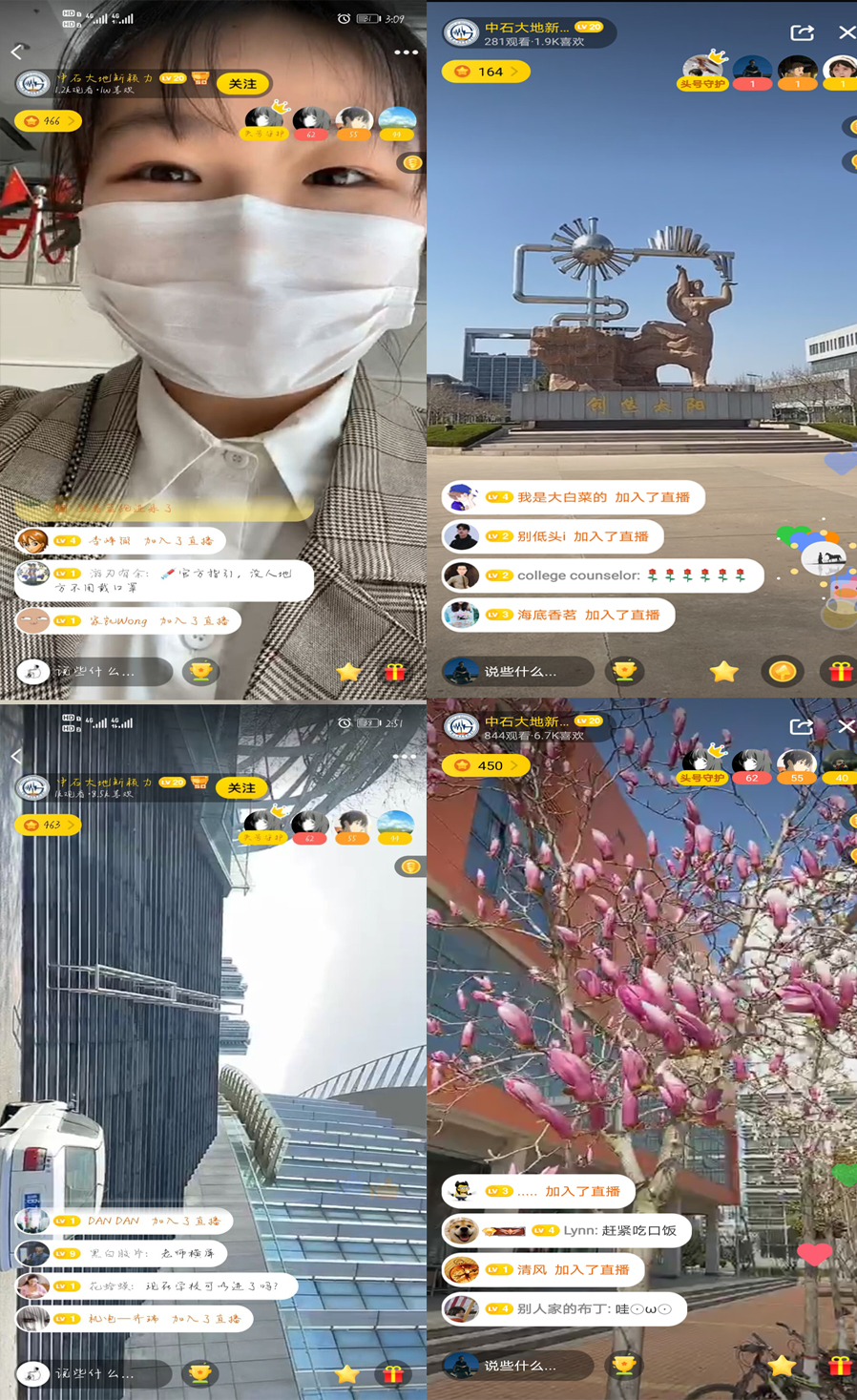 石大春光如期而至,针对疫情阻隔无法按时返校的情况,为一解公司师生的思校之情,公司员工会策划组织了一场“线上游园会”。吹面杨柳风,沾衣玉兰雨。公司辅导员范静蕾通过QQ直播的形式带领石大学子和员工们欣赏“不一样的石大春天”。共同见证公司为保证师生的安全健康正在进行的全力准备。