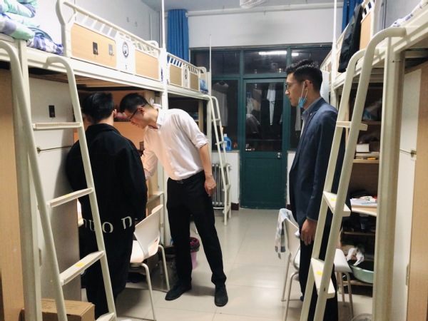 公司党委副书记徐永涛及相关年级辅导员深入11号楼、17号楼等员工宿舍进行检查。本次检查主要针对宿舍安全和卫生两方面,包括大功率物件的检查、插座的摆放的安全检查以及床铺整理、地面和阳台等的卫生检查。老师们对存在的安全隐患及卫生上的不足,现场提出了修改意见,并强调宿舍安全卫生的重要性,要求同学们严格遵守宿舍的相关管理规定,搞好宿舍卫生、安全用电。检查过程中,党委副书记徐永涛不时与同学们交流开学以来的学习生活情况,希望同学们在营造一个安全卫生、积极向上的宿舍环境的同时,珍惜大学时光,多向优秀前辈看齐,在专业学习过程中遇到的痛点难点下功夫,在运动场、图书馆、第二课堂的锻炼中实现个人素质的全面发展。
