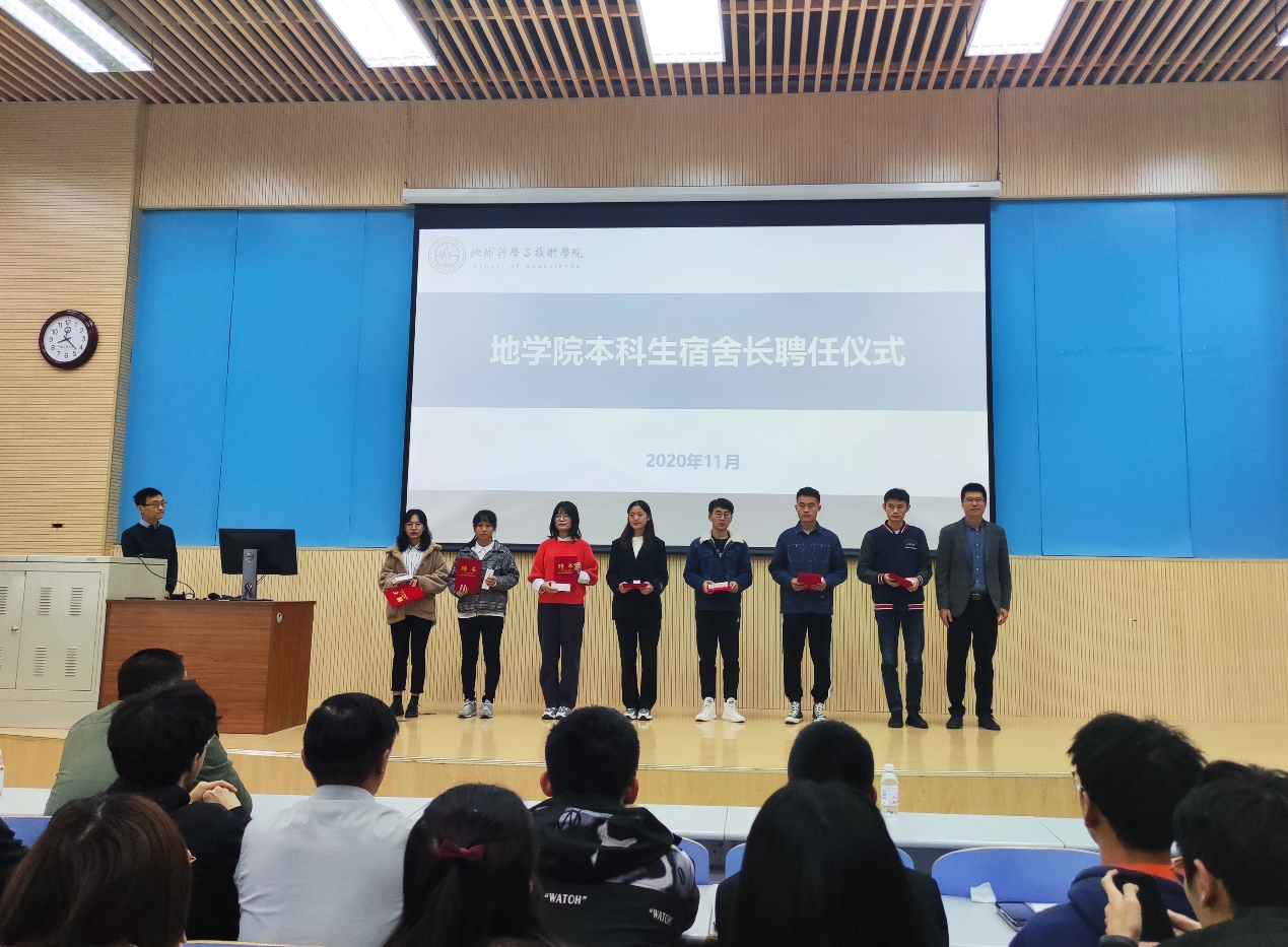 11月1日,公司本科生宿舍长、研究生网格员聘任仪式暨第一期培训会于南教300报告厅举行。公司党委副书记徐永涛、学校心理健康教育中心韩旭东副教授出席聘任仪式,为本科生宿舍长、研究生网格员颁发聘书。本次聘任仪式由辅导员栗磊主持,公司全体辅导员、本科生宿舍长、研究生网格员参加此次聘任仪式。