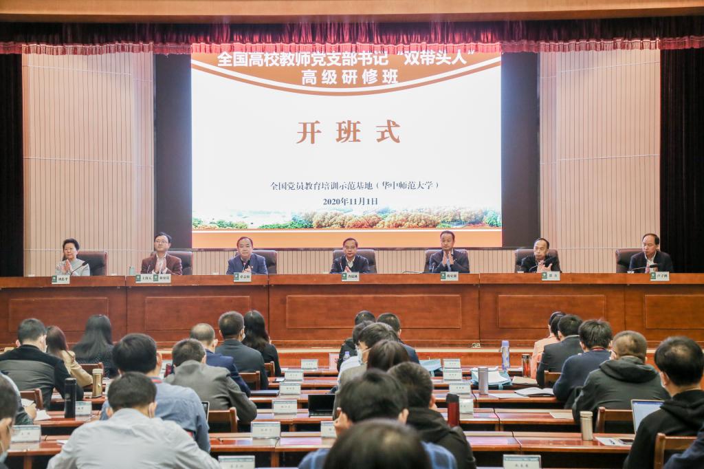 教育部思政司主办的全国高校教师党支部书记“双带头人”高级研修班,于11月1日在全国党员教育培训示范基地——华中师范大学如期开班。教育部思政司、湖北省委教育工委有关负责同志,华中师范大学党委负责同志以及相关职能部门负责人出席开班仪式并致辞。