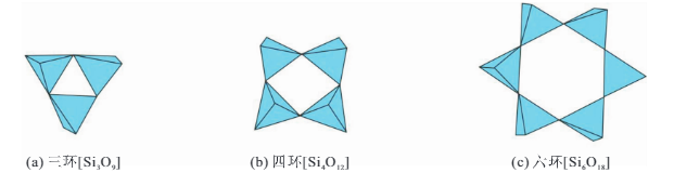 具有由有限的若干个[ZO4]四面体以角顶相连而构成封闭环状硅氧骨干的硅酸盐矿物。其硅氧骨干按组成环的四面体个数而有三元环、四元环、六元环、八元环、九元环和十二元环之分;此外还有双层的四元环和六元环以及带有分枝的六元环。常见的如绿柱石、堇青石和电气石中的六元环。环与环之间通过活性氧与其他金属阳离子(主要有Mg2+、Fe2+、Al3+、Mn2+、Ca2+、Na+、K+等)的成键而相互维系。环的中心为较大的空隙,常为(OH)-、水分子或大半径阳离子所占据。