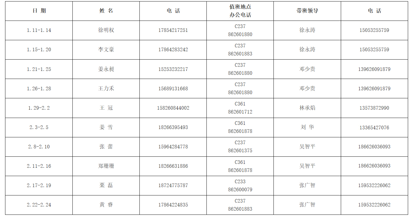 十大体育网站2021年寒假值班安排表
