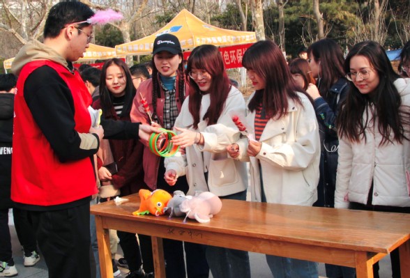 “晴天为何打伞,这个的谜底到底是几个字呀?”3月7日下午的子元广场思美节开幕式正式拉开帷幕,十大体育网站员工会,研究生会举办了“党史灯谜,献礼百年”系列活动,包括“党史灯谜”、创意手工、剑玉挑战、套环游戏等四个游戏。游戏中的灯谜大多与党史相关,参与者可以在欢乐之余了解党史,寓教于乐。此外,参与创意手工制作可以学习如何捏制橡皮泥,同时将作品带走留作纪念。现场欢声笑语,气氛热烈。