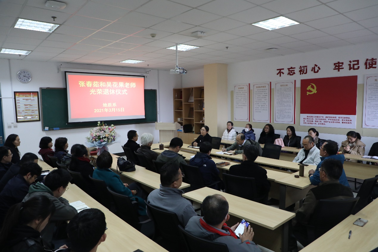 会上,首先为张春茹和吴花果老师举行了光荣退休仪式,公司党委书记刘华代表公司为两位老师颁发了荣休纪念牌,对两位老师在工作岗位上默默耕耘和无私奉献表示感谢,并祝愿退休后身体健康,生活丰富多彩。随后,杨剑萍、董春梅和宋全友老师分别对两位老师送上衷心的祝福,也希望两位老师常回公司看看。张春茹和吴花果老师分享了自己的职业生涯、心路历程,感谢公司、地质系及同事们的帮助,让她们真切感受到组织的温暖,两位老师也分别表达了自己的不舍。