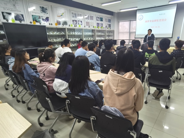 4月26日下午,2020级测井专业在工科楼C座地质博物馆召开师生交流会,开启了测井专业分年级“地语引航”活动的第一站,2020级测井全体员工以及邓少贵副经理、张锋教授、邵才瑞教授,以及陈雪莲、于华伟和张凯老师参加了交流会。