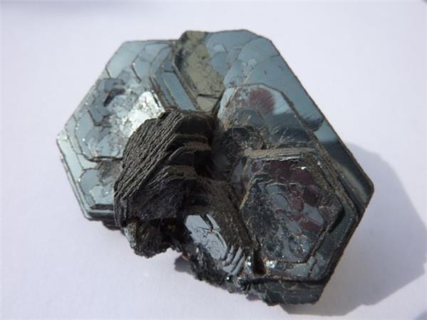 [形态] 单晶少见,偶见厚板状;通常呈不规则细粒状、鳞片状。可见依(0001)和(1011)成双晶,但很少见;与棚石、磁铁矿、刚玉连生的现象较为常见。
