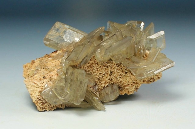 [物理性质] 重晶石特点为:纯净的晶体无色透明,一般呈白色,灰白色,浅黄色,淡褐色;玻璃光泽;解理面呈珍珠光泽。解理{001}完全,{210}中等(近完全)。解理夹角{001}∧{210}=90°,(210)∧(20)>90°。硬度3~3.5。相对密度4.3~4.5。