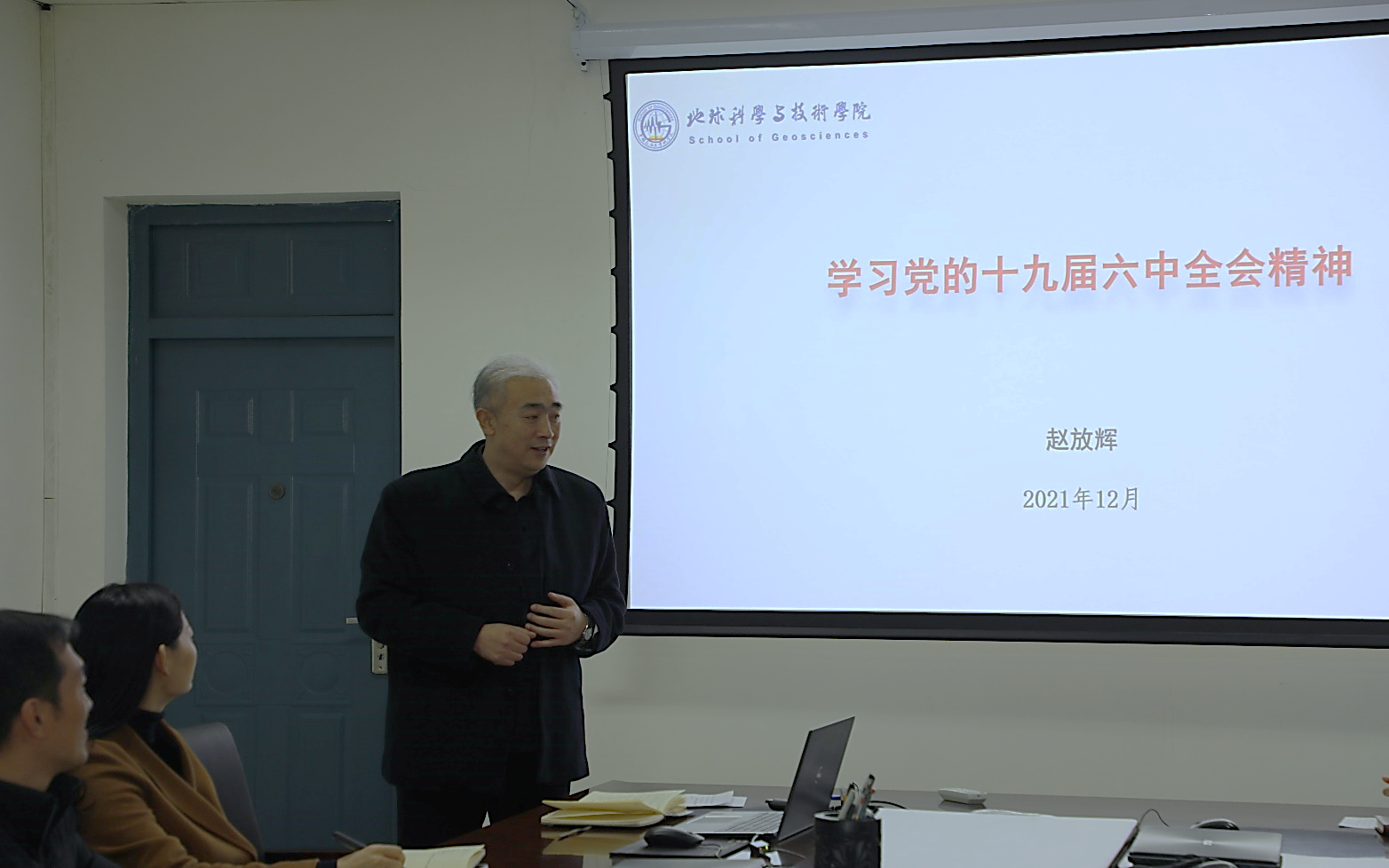 12月17日下午,公司机关党支部在工科C251会议室开展“学习党的十九届六中全会精神”主题党日活动,邀请公司党委书记赵放辉为支部党员讲授专题党课,会议由机关党支部书记郭雪娇主持,正处级专职组织员郝传宝、党委副书记郑珊珊及全体机关党支部成员、辅导员参加活动。