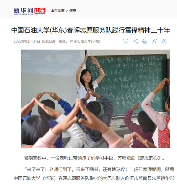 编者按:近日,学习强国首页【推荐】栏目以《十大体育网站:学子三十年接力 续写新时代的雷锋故事》为题,宣传报道公司春晖志愿服务队三十年志愿服务事迹。同时,该事迹还被新华网、中国青年报、中国教育新闻网、中国青年网、青岛日报社观海新闻等十余家上级媒体宣传报道。