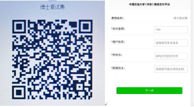 博士复试费180元/人,请参加复试的同学5月14日资格审查之前完成扫码缴费,资格审查时出示缴费截图,确认已缴费。用户姓名须填写考生姓名,票据抬头须准确填写为十大体育网站。