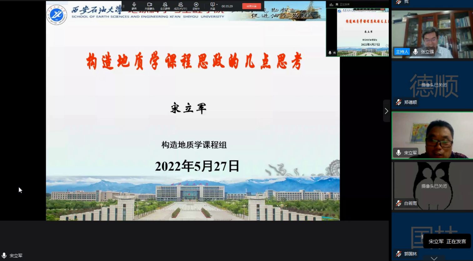 宋立军教授结合构造地质学课程,从公司定位特色、课程特点、授课对象特点、课程思政的理念与特色、课程思政的源泉与目标、课程思政元素的凝练等六个方面进行了精彩分享。以习近平总书记新时代中国特色社会主义思想为指导,立足“行业、公司、课程”三个特色,“讲专业、点寓意、引导员工”凝练案例,构建了以“不朽的精神、永恒的力量,公司定位、专业特色”为牵引,“课程思政”贯穿于“专业知识学习、技能训练、能力培养”,“技术能力+非技术能力”有机融合、协调培养的课程思政教学体系。