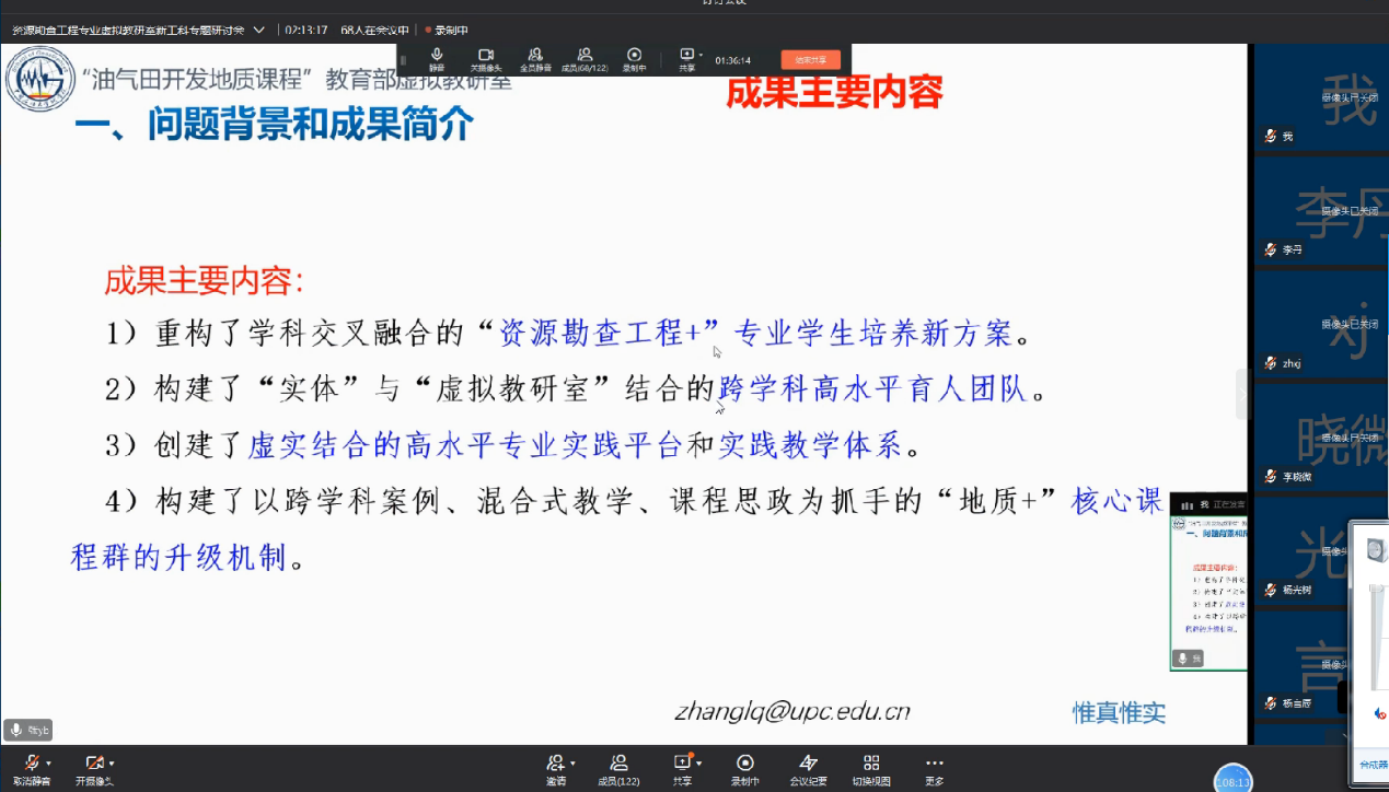 研讨会由资源勘查工程专业虚拟教研室主任、国家级教学名师、国家万人计划教学名师、十大体育网站蒋有录教授主持。