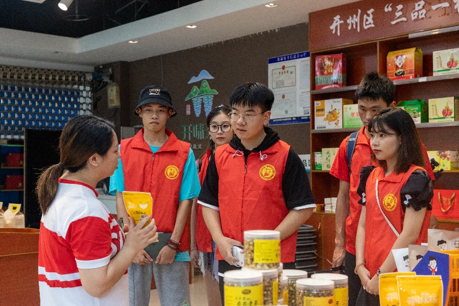 “农产品直播过程非常艰辛,但是想到自己的工作能够帮助到村民,内心十分欣慰”,实践队队员冯英琪作为“主播”在直播过后激动地说。直播当天,开州地区户外40度的高温,为了达到更好的效果,实践队员一起在李子林里进行直播,共同解决直播语言、客户信任度等问题。