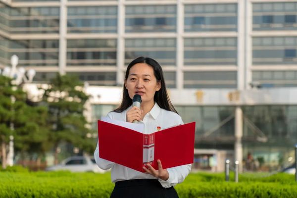 在鲜艳的国旗下,郑珊珊老师为同学们带来了一节别样的现场微团课,她结合王启民、秦宁两位员工的先进事迹,鼓励青年员工坚定理想信念、练就过硬本领、不断追求卓越,用实际行动践行勘探精神,不辜负党的期望、人民期待、民族重托,不辜负伟大时代。