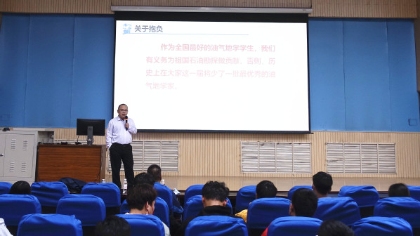 宗兆云教授对全体研究生新生的到来表示热烈欢迎,介绍了公司公司发展史、学科实力、科研平台和团队力量。之后,他根据自己的求学之路与大家分享经验,回答了入学新生“我是谁?我要干什么?我要怎么干?”的疑问。他表示在开展研究生生活之前要找到自己的定位,提出实验室文化的十点思考和九条君子之道,勉励大家要以学习为中心,走全面发展路线,扛起国家能源需求的大梁。2020级硕士研究生张东林从科研和员工工作的角度分享了自己的宝贵经验,20级博士生陈阜斌则分享了自己的读博心路历程和科研感悟。