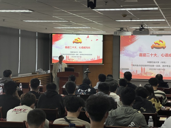 为增进测井系师生交流,10月14日下午,测井重点实验室研究生第一党支部与测井专业本科生党支部于工科C757联合举办“喜迎二十大,心语成与长”师生交流会。研究生党支部书记周小松主持会议,范宜仁教授、邓少贵教授、苏远大教授、张锋教授、谭宝海副教授、陈雪莲副教授,党支部员工代表及测井专业2022级全体本科生出席参加。