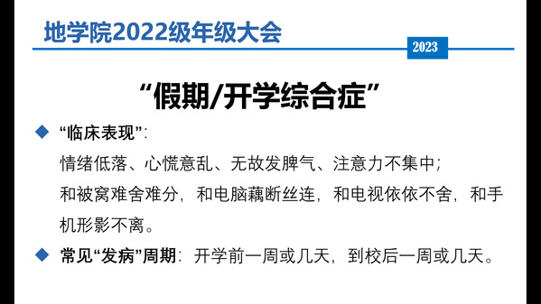 开学前,公司本科2022级召开线上年级大会,会上对员工安全问题做出重点强调。辅导员王力禾指出,在做好健康监测、顾好自身健康状况的同时,更要注意网络安全。辅导员崔景辉就员工“开学综合症”进行“病情分析”、提出“治疗方案”,提醒同学调整作息、找准学习节奏,避免出现紧张焦虑的负面情绪。