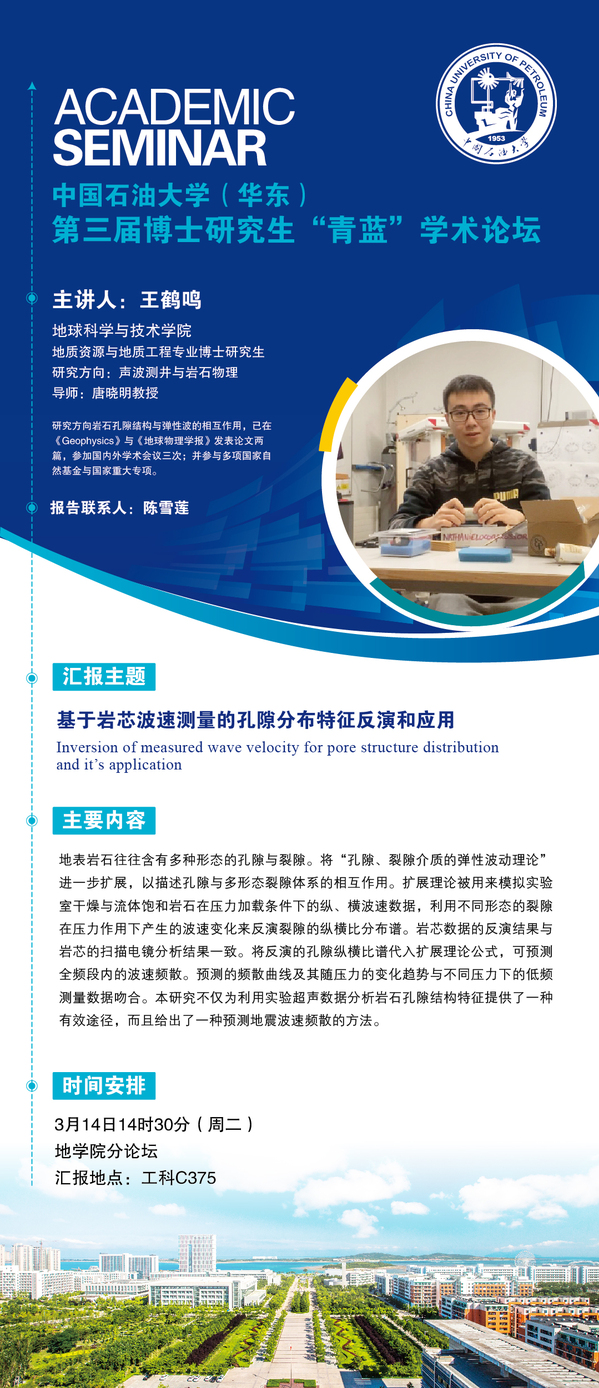 第三届博士青蓝论坛|地学第1讲:基于岩芯波速测量的孔隙分布特征反演和应用