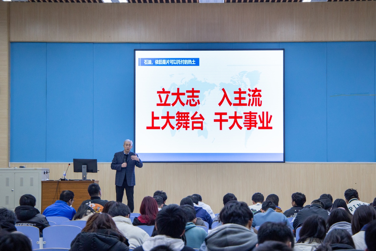 “习近平总书记在胜利油田考察调研时指出,石油能源建设对我们国家意义重大,中国作为制造业大国,要发展实体经济,能源的饭碗必须端在自己手里。”赵放辉以习近平总书记的重要指示为引,向同学们介绍了石油行业发展情况及展望,他表示石油资源在国家发展战略中仍然具有重要地位。他强调,同学们学习生活在公司一流学科和4个国家一流专业的资源支持、环境氛围中,打下了扎实的基础和突出的能力、培养了深厚的家国情怀和开阔的视野格局,要坚定信心,立足专业将个人选择与祖国需要同向同行。