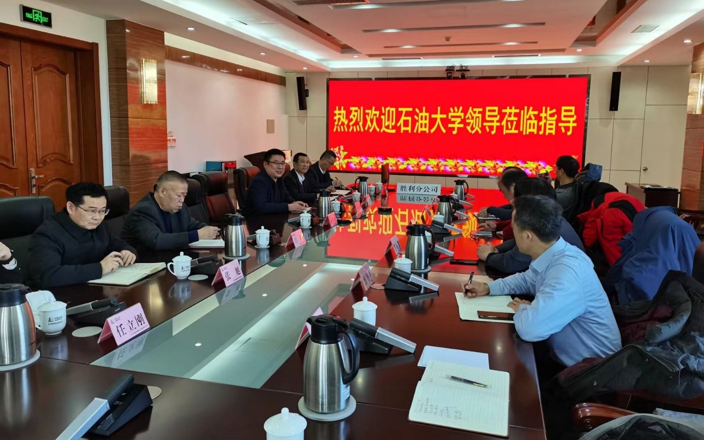 在中石化胜利油田物探研究院,座谈双方分别介绍了各自单位的基本情况,并进行了广泛充分地沟通交流,双方一致同意在油气地球物理勘探科研领域以及本科、研究生和博士后等不同层次人才培养等方面深入开展合作。