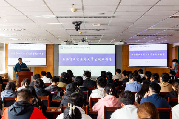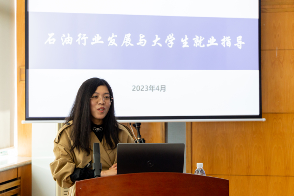 张汇理从胜利油田基本情况、人才发展平台、薪酬福利待遇以及招聘工作安排等四个方面对石油行业的发展趋势与员工就业前景进行了介绍,同时具体介绍了胜利油田科研成果、发展动力、人才培养发展序列等情况。她结合习近平总书记在视察胜利油田时提出“能源的饭碗必须端在自己手里”的重要指示精神,强调地学专业是国之所需,经久不衰,坚信同学们未来定能勇担大任,能源报国。
