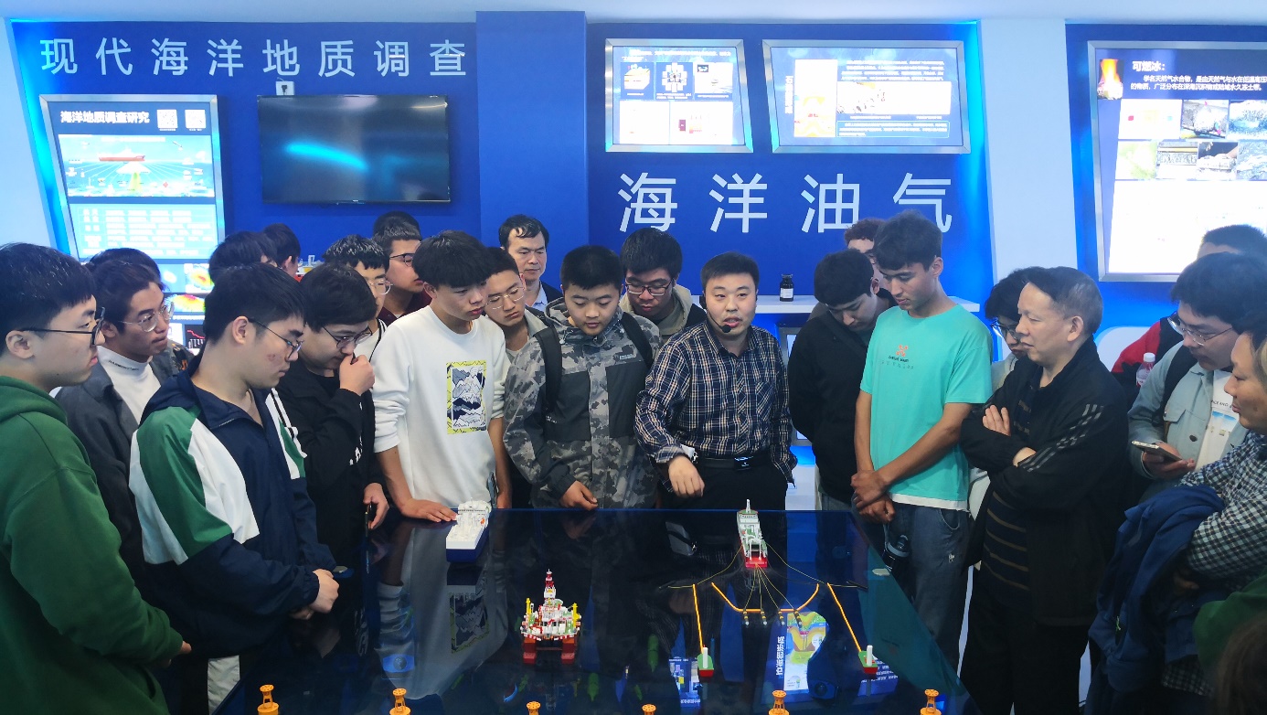经前期沟通协调,地球物理系教师代表带领勘查技术与工程(物探)和地球物理学两专业2022级员工于4月18日赴青岛海洋地质研究所海洋地质科技馆参观学习,受到了海地所的热情接待,科技处副处长齐君亲自为师生讲解。