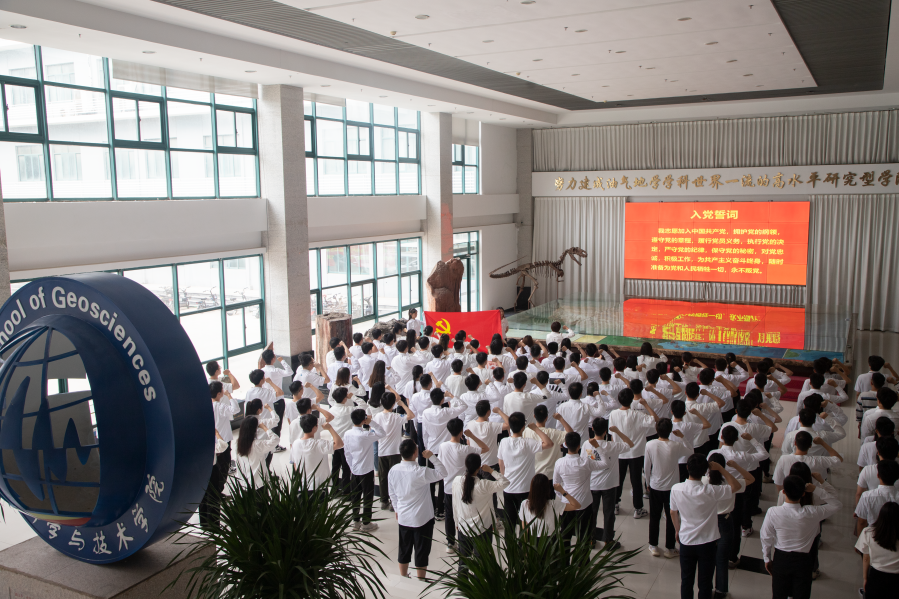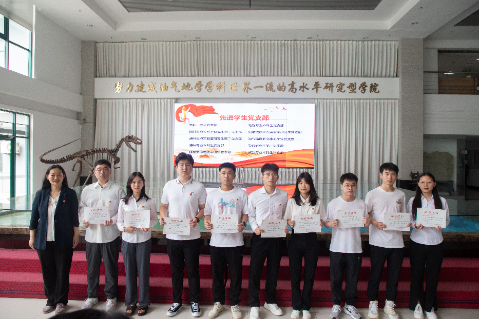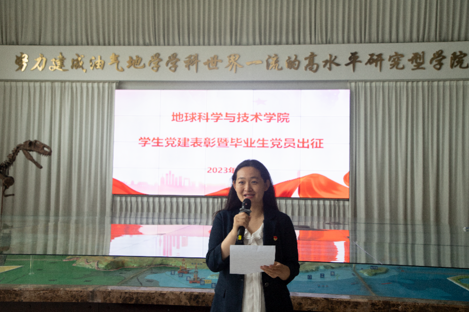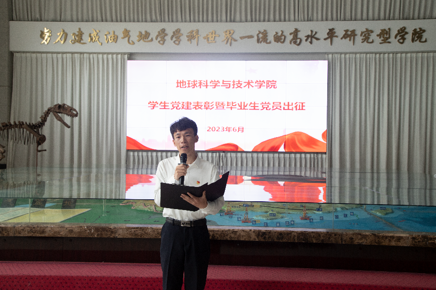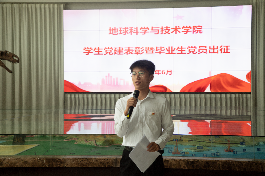 新发展党员、毕业生党员面向党旗庄严宣誓。铮铮誓言,字字铿锵,这既是新发展党员初心使命的宣示,也是毕业生党员出征前接续奋斗的承诺和决心。毕业生党员杜青代表全体毕业生党员承诺将做到如下四点:牢记身份,加强建设;争做骨干,勇当先锋;筑牢底线,严守纪律;家国同心,勇挑重担。面向全体毕业生党员发出号召,在工作岗位上传承“家国同心,艰苦奋斗,惟真惟实,追求卓越”的石大精神,想国家之所想,急国家之所急,应国家之所需,发挥专业本领,为国家能源事业贡献力量。