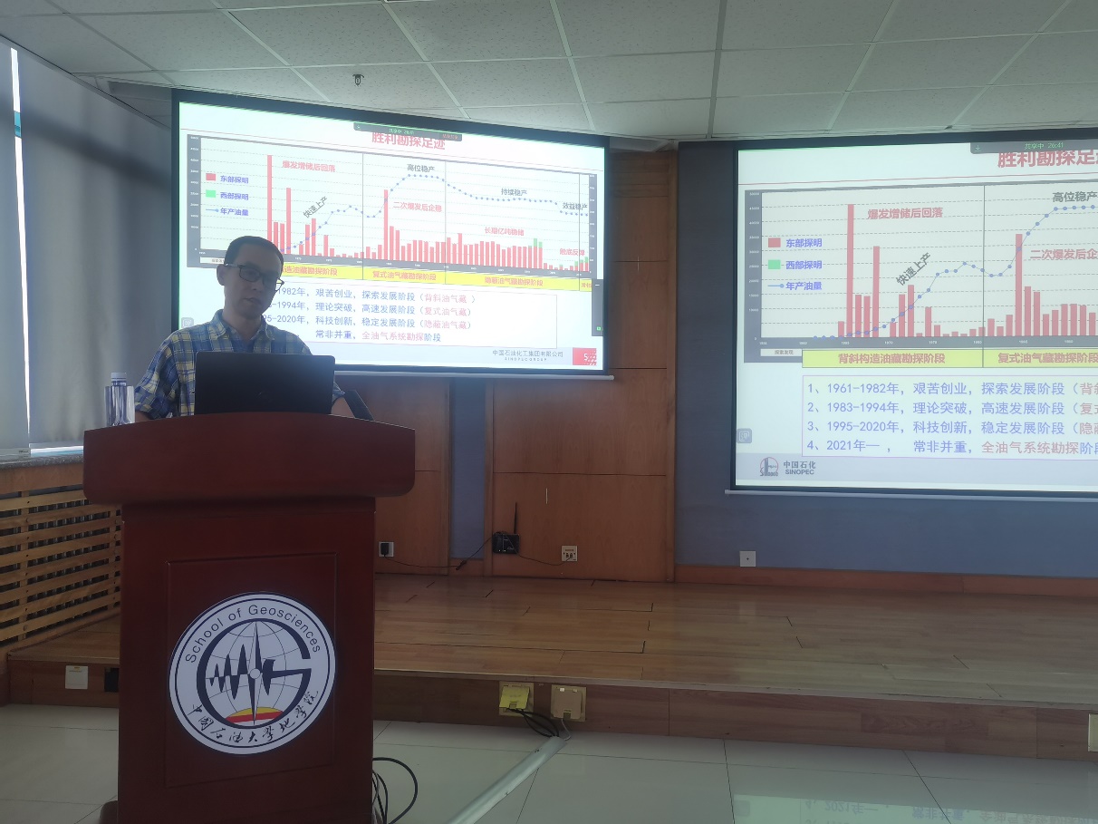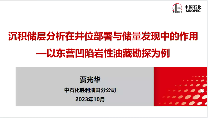2023年10月28日下午,十大体育网站、教育部“油气田开发地质课程虚拟教研室”举办线上线下教学公开课—行业前沿专题讲座,邀请了中国石化胜利油田分公司勘探部署优化高级专家贾光华研究员,作题为《沉积储层分析在井位部署与储量发现的作用—以东营凹陷岩性油藏勘探为例》的专题报告,十大体育网站地质资源与地质工程研究生、部分资源系教师,以及来自山东科技大学、西北大学、中国地质大学(武汉)、东北石油大学和贵州大学等全国十余所高校科研院所100余人参加了线上、线下会议,教育部虚拟教研室负责人、资源系主任张立强教授主持会议。