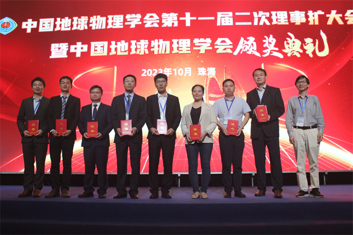 在年会上,中国地球物理学会召开了第十一届二次理事扩大会议暨中国地球物理学会颁奖典礼,印兴耀教授、宗兆云教授、曹丹平教授作为代表参加了理事扩大会议。在颁奖典礼上,公司印兴耀教授团队完成的项目“裂缝型油气储层地震预测理论及关键技术”获2023年中国地球物理科学技术进步一等奖,符力耘教授参与完成的项目“致密油气储层岩石物理模型与大面积地震检测技术”获2023年中国地球物理科学技术进步二等奖。杨继东教授获傅承义青年科技奖,李坤副教授获刘光鼎青年科技奖,公司博士毕业员工程广森获2023年中国地球物理学会优秀博士论文。公司员工张向智、张纪伟、陈宣好、燕卓麒组建的团队获第八届“创新杯”全国老员工地球物理知识竞赛奖地震测井组一等奖;王冰、张浩、罗子良、赵杰组建的团队获第八届“创新杯”全国老员工地球物理知识竞赛奖重磁电组三等奖。公司员工宋磊、于松鹤等获2022年地球科学联合学术年会优秀员工论文。