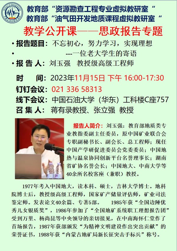 【预通知】教育部“资源勘查工程专业虚拟教研室”“油气田开发地质课程虚拟教研室”活动——教学公开课:思政报告专题
